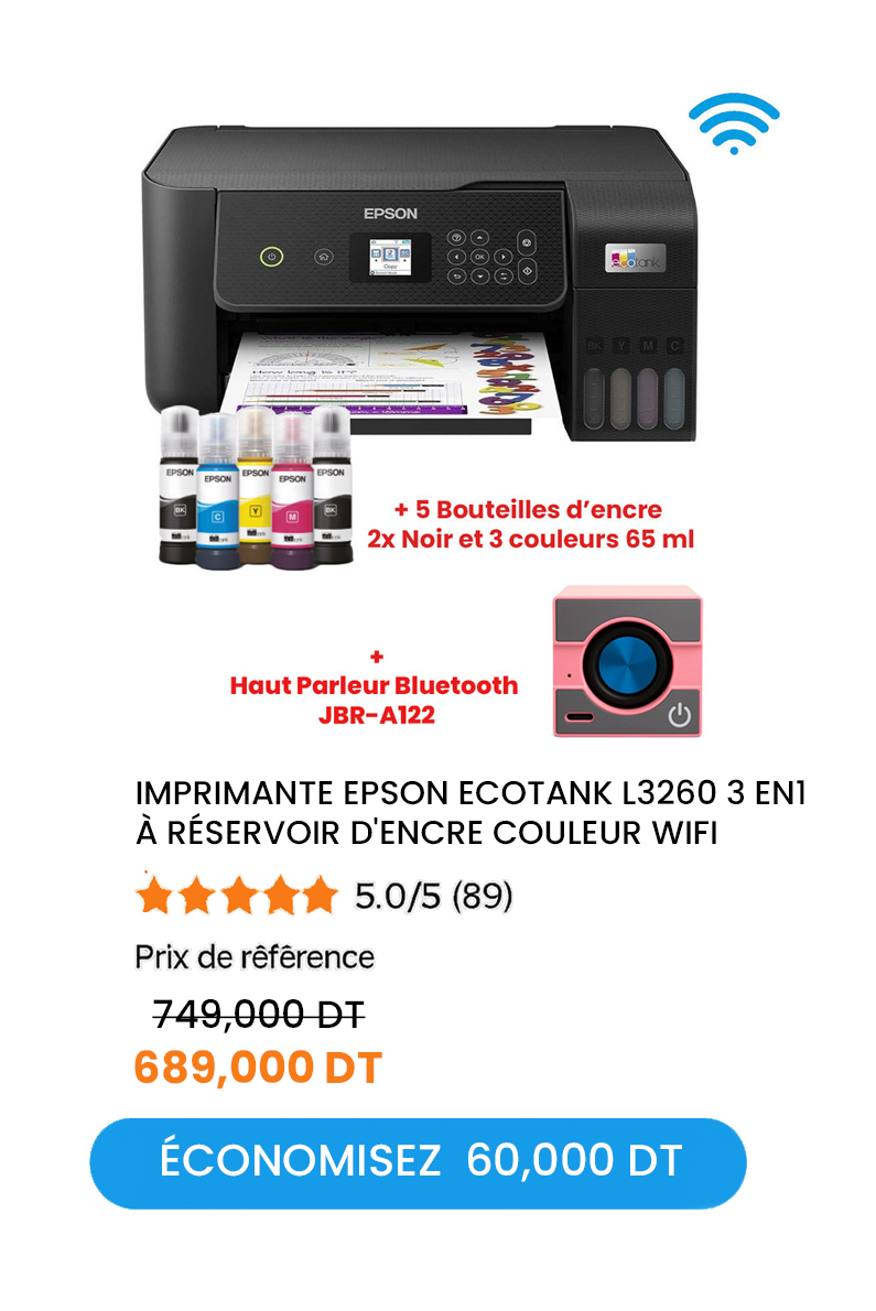 Epson : une marque leader dans l'industrie de l' impression et de l'audiovisuel . Que vous cherchiez une imprimante Epson prix Tunisie compétitif ou un modèle EcoTank multifonction, vous trouverez chez Spacenet un large choix adapté à vos besoins personnels ou professionnels.