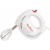 Batteur Moulinex Easy Max - Puissance : 200 W - 2 vitesses - Couleur : Blanc&Rouge - Malaxeurs plastiques - Accessoires fournis : 2 fouets en métal - Enrouleur de cordon - Dimensions (LxPxH en cm) : 16x6,5x14,5