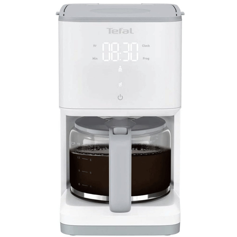 Cafetière Electrique Tefal Sense - Puissance: 1000W - Capacité: 1.25 Litres - Nombre de tasse: 15 - Fonction Aroma - Plaque chauffante (Keep‑Warm) - Anti‑drip - Minuterie programmable (Timer) - Affichage digital et commandes tactiles - Tête d’infusion surdimensionnée - Verseuse en verre compatible lave-vaisselle - Arrêt automatique - Programme de détartrage intégré - Facile à nettoyer - Design compact et moderne - Couleur: Blanc - Garantie: 1 an