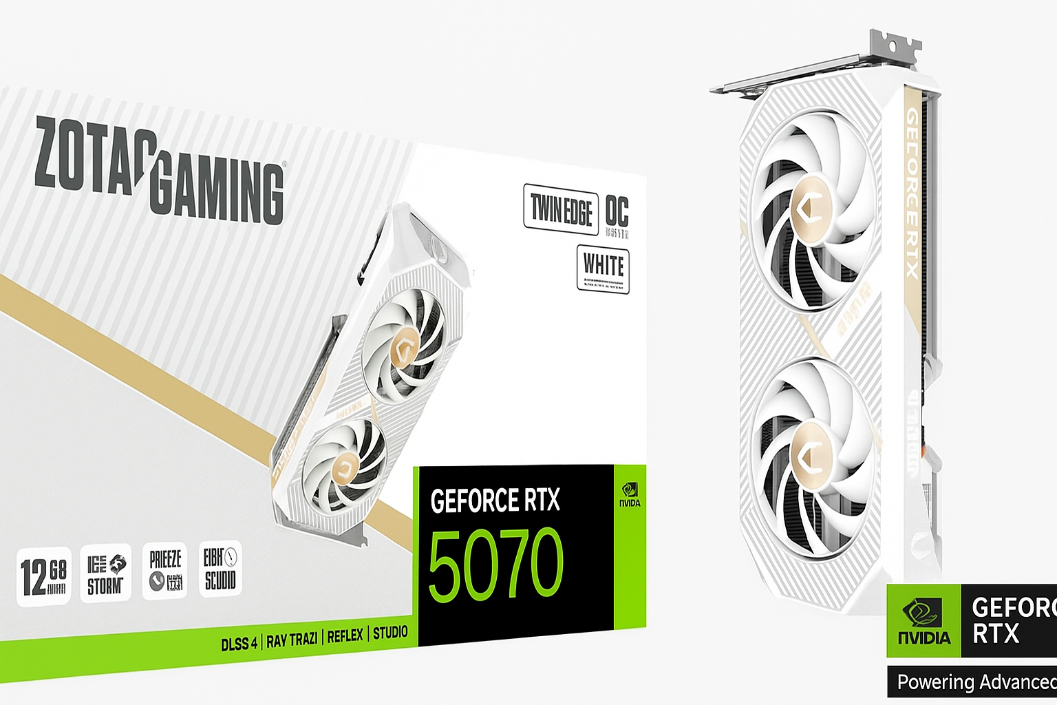 Carte Graphique Zotac Gaming GeForce RTX 5070 Twin Edge OC - Chipset graphique : NVIDIA GeForce RTX 5070 - Mémoire graphique : 12 Go - Type de mémoire : GDDR7 - Fréquence boostée : 2542 MHz - Consommation d'énergie : 250 W - Bloc d'alimentation recommandé : 650W - CUDA: 6144 - Bus mémoire: 192 bits - Fréquence de mémoire: 28 Gbit/s - PCI Express 5.0 x16 - Alimentation électrique: 1 entrée d'alimentation 12 V - 2 x 6 - Refroidissement: IceStorm 2.0 - Capacité multi-écrans - Dimensions : 241,5 x 120,1 x 40,6 mm - Couleur : Blanc - Garantie : 1 an
