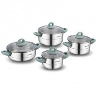 Set 8 Pièces KORKAMZHera Minta - Faitout 16x9 cm / 1,8 litres + Faitout 20x11 cm / 3,5 litres + Faitout 24x12 cm / 5,5 litres + Faitout 24x8 cm / 3,5 litres - Acier inoxydable 18/10 Cr-Ni - Base super capsule pour une conduction thermique homogène - Poignées ergonomiques en bakélite qui ne brûlent pas les mains - Surfaces hygiéniques durables soigneusement polies - Peut être nettoyé au lave-vaisselle - Couleur:Inox