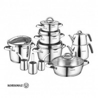 Set de 17 pièces en Inox : 4 Faitouts avec couvercles Vertex (8 pièces) - Ensemble de 3 cafetières Vertex (3-4-5 Cup) - Ensemble de théière Vertex (1L, 2L)- Cocotte Vertex6,5 L - Dimensions des Faitouts: 16 cm / 2,0 L 20 cm / 3,5 L 24 cm / 3,4 L 24 cm / 5,5 L -Acier inoxydable 18/10