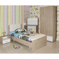 Chambre enfant ALFA Denver/Blanc: – Lit (L100/P194/H95cm) – Table de nuit (L55/P45/H45cm) – Armoire 2 Portes, ouvrantes (L83/P46/H187 cm) – Bureau (L110/P60/H170 cm)