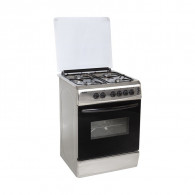 Cuisinière KLASS - Nombre de feux : 4 - Largeur: 60 cm - Allumage électrique avec bouton - Grill + plateau émaillé - Tourne broche - Flamme haut/bas - Eclairage four - Porte composée de double vitrage pour isoler la façade extérieure du four de la chaleur intérieure - Minuterie avec signal sonore - Couvercle en verre - Gaz LPG avec Kit Gaz Naturel - Couleur : Inox - Garantie : 1 an