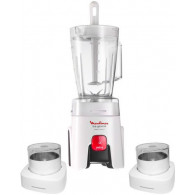 Blender Moulinex LM242025 - Puissance 450W - Capacité du mélangeur 1.5L - 1 Vitesse + Pulse - Lames en acier inoxydable - 2x Bol Moulin à café- Couleur : Blanc , Poids: 1 kg, Garantie: 1 an .