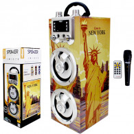 Haut Parleur Rechargeable Portable - Puissance : 3Wx2 - Connectivité : Bluetooth, Radio FM, Carte mémoire, USB, AUX, Double Sortie micro - Capacité de la Batterie : 1000mAh / 3.7V - Fréquence: 18-150Hz - Accessoire: Télécommande, Microphone, Câble USB, Câble audio Jack, Câble Microphone 1.2 Mètres - Dimension: 35x15x14 cm - Couleur : Jaune - Garantie : 1 an.