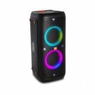 Enceinte JBL Party Box 300 - Technologie de Connectivité: Sans Fil Bluetooth - Haut Parleurs: 2 woofers 165 mm, 3 tweeters 57,2 mm - Batterie:Lithium-ion - Réponse en fréquence: 45 Hz à 20 kHz - Autonomie de la batterie: 18 heures -Temps de charge de la batterie: 5heures - Jeu de lumières - Arrêt automatique - Fonction Karaoké - Connecteurs: Jack 3.5 mm, RCA G/D - Dimensions: 310 x 320 x 690 mm - Poids: 15.84 kg - Couleur: Noir