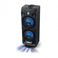 Haut Parleur Muse Party Box - Puissance:400W - Connectivité: Bluetooth - Port USB 2.0 permettant la lecture de fichiers MP3 Port USB de chargement Entrée auxiliaire: Prise 3,5mm 2 entrées micro - Lumières de couleur et effets flash - Radio PLL FM avec 60 stations mémorisables - Diffusion de la musique en streaming depuis un autre appareil compatible Bluetooth comme un Ordinateur portable, une Tablette ou un Smartphone Coffrage bois - Dimensions : 835 mm (H) x 265 mm (P) x 287 mm (L) -Couleur: Noir - Garantie:1 an