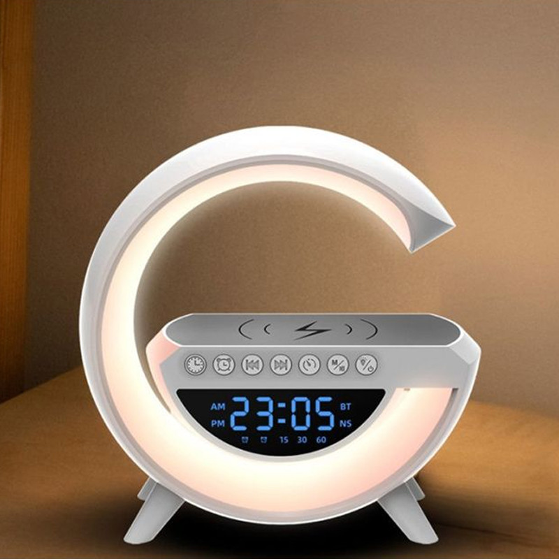 Haut Parleur Bluetooth 4en1 3401 - Puissance : 15 Watts - Connectivité: Sans Fil, Bluetooth 4.2 - Autonomie : 2-3 heures - Fonction réveil et horloge - Chargement sans fil - Angle d'éclairage Réglable - Matériau Plastique - Qualité du son HiFi - Sept sélections de couleurs - Led RGB- Son surround 360° - Chargez votre smartphone tout en écoutant de la musique - Design Portable - Distance de transmission : 10 M - Connecteurs : Emplacement carte TF, Aux, USB - Dimensions : 235 x 80 x 238mm - Couleur: Blanc - Garantie: 3 mois