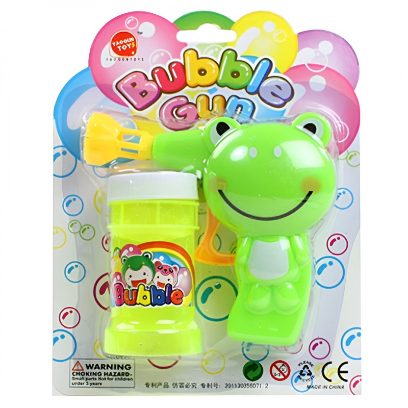 Pistolet à Bulles Babioles Grenouille - Age recommandé :3 ans et plus -Sexe recommandé :Unisexe -Matière : Plastique - Un design élégant avec l'image d'une Grenouille stylisé - Solution savonneuse incluse - Principe mécanique de fonctionnement - Facile à utiliser - Dimensions : 11,5 x 3,5 x 10 cm - Couleur : Vert
