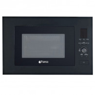 Micro Ondes Encastrable Franco - Capacité: 25L - Puissance de Four à micro-onde : 900 Watts- Type de Micro-onde : Combiné (micro-onde, Four, Grill) - Revêtement facile à nettoyer: Antibactérien - Taille du plateau tournant : 315 mm · Fonctions : Réglage de l'heure, Démarrage rapide, Plus / Moins , Saveur de goût, Verrouillage Enfant -Puissance électrique : 230V - Dimension : 400 x 595 x 388 mm -Couleur: Noir -Garantie : 2 ans