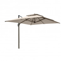 Parasol Shadow - Dimensions : 53 x 77 x 1.5mm - Structure: 100% aluminium recouverte d’une peinture époxy - Croisillon du pied: 100% acier - Résistant à l’eau - fonction d’inclinaison verticale à 4 positions pour un réglage facile de l’angle - Double Top Paasol - STEEL RIBS:14 x 24 x 0.5mm - Power Coating : Champagne - Rotation - Couleur : Grége