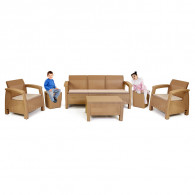 Salon Carthage 5 places - Dimensions Divan 3 places : H.79 – L.182 – P.70 - Dimensions Fauteuil salon Carthage : H.79 – L.75 – P.70 - Dimensions Table basse salon Carthage : H.33 – L.69 – P.59 - Design ergonomique, Fabriqué à partir de résine durable et résistante aux intempéries - Couleur : Marron