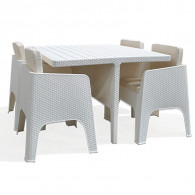 Salon de Jardin GAMMARTH Grège 4 Chaises et Coussins + Table