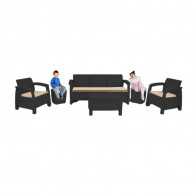 Salon Carthage 5 places - Dimensions Divan 3 places : H.79 – L.182 – P.70 - Dimensions Fauteuil salon Carthage : H.79 – L.75 – P.70 - Dimensions Table basse salon Carthage : H.33 – L.69 – P.59 - Design ergonomique, Fabriqué à partir de résine durable et résistante aux intempéries - Couleur : Noir