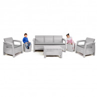 Salon Carthage 5 places - Dimensions Divan 3 places : H.79 – L.182 – P.70 - Dimensions Fauteuil salon Carthage : H.79 – L.75 – P.70 - Dimensions Table basse salon Carthage : H.33 – L.69 – P.59 - Design ergonomique, Fabriqué à partir de résine durable et résistante aux intempéries - Couleur : Gris